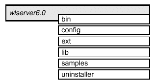 El directorio de producto mostrado aqu�, wlserver6.0, es el directorio por defecto para WebLogic Server 6.0. Podemos cambiar el nombre por defecto durante la instalaci�n. Los contenidos de cada directorio se describen en la siguiente tabla: