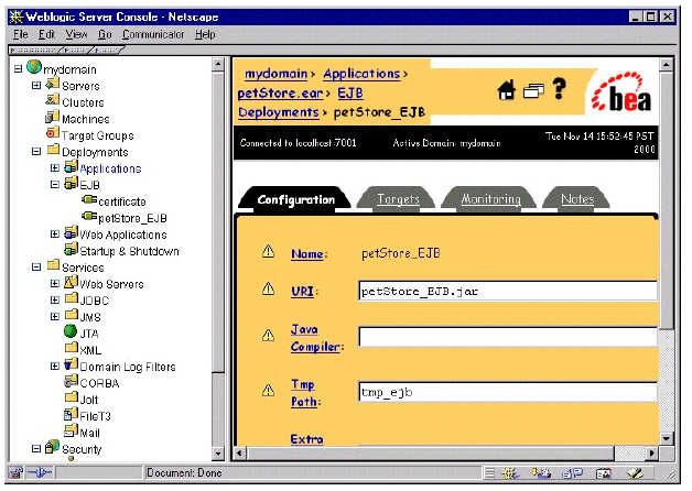 El proceso usual para configurar un servicio en la consola de administraci�n es configurar el servicio y despu�s seleccionar los objetivos (los servidores WebLogic) en los cuales deseamos desplegar el servicio.