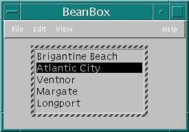 El Bean OurListBox ilustra como utilizar las propiedades indexadas. OurListBox desciende de la clase List para proporcionar un Bean que presenta al usuario una lista de elecciones: Choices que se puede proporcionar y dise�ar durante el dise��. Aqu� tienes una ilustraci�n de un ejemplar de OurListBox .