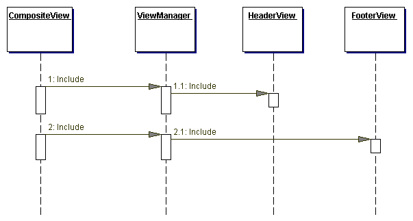 La siguiente figura representa el diagrama de secuencia del patr�n Composite View.