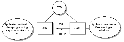 El fichero j2ee.jar que viene con nuestra instalaci�n J2EE proporciona APIs para analizar y manipular datos XML. El fichero JAR realmente prporciona APIs XML para SAX, DOM y J2EE. Podemos usar cuaquier API que necesitamos como se muestra en la siguiente figura, el texto XML es independiente de la plataforma y el lenguaje de creacci�n...