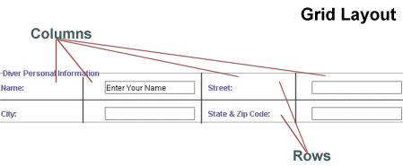 // Sets the grid to 3 rows and 2 columns setLayout(new GridLayout(3,2)); // Sets the grid to 5 rows, 4 columns, and // vertical and horizontal gaps of 5 setLayout(new GridLayout(5,4,5,5));