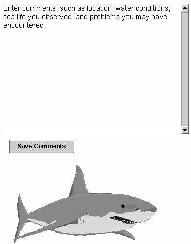 Una vez que el buceador ha metido el texto en el �ra de texto, pulsa el bot�n Save Comments, y el m�todo actionPerformed muestra una caja especial para que el usuario introduzca el nombre del fichero, grabe el fichero en una localizaci�n deseada, luego pulsa Save. Entonces el texto se escribe en un fichero creado en el sistema.
