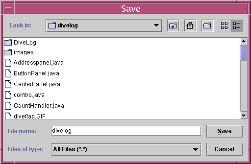 El objeto JFileChooser consiste en un di�logo que contiene una lista de ficheros, un campo de texto, un bot�n como Save u Open, un bot�n Cancel, y si se necesita, otros botones de selecci�n.